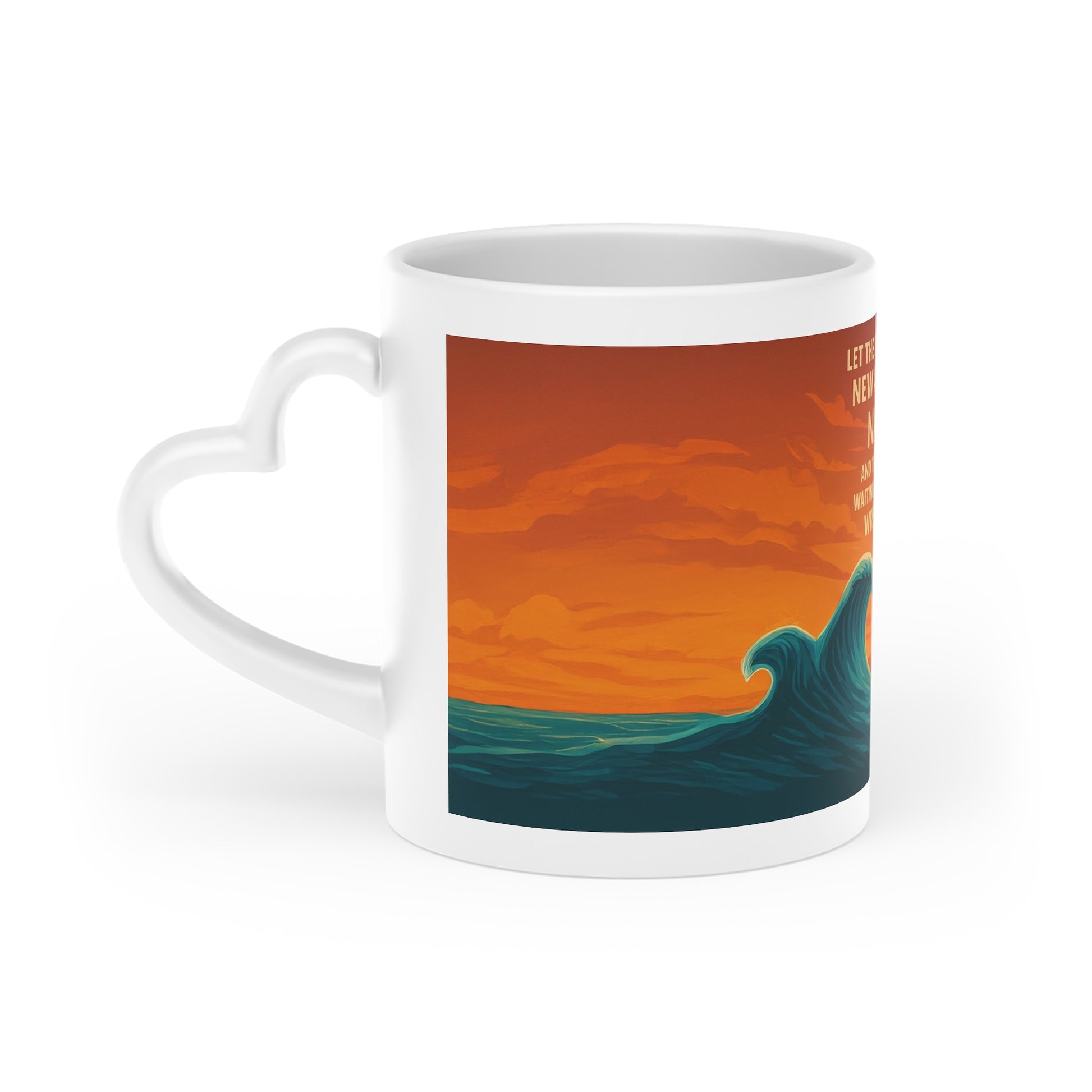 Heart-Shaped Adventure Mug, Surfer Gift, Ocean Lover's Coffee Cup, Beach Decor, Personalized Drinkware